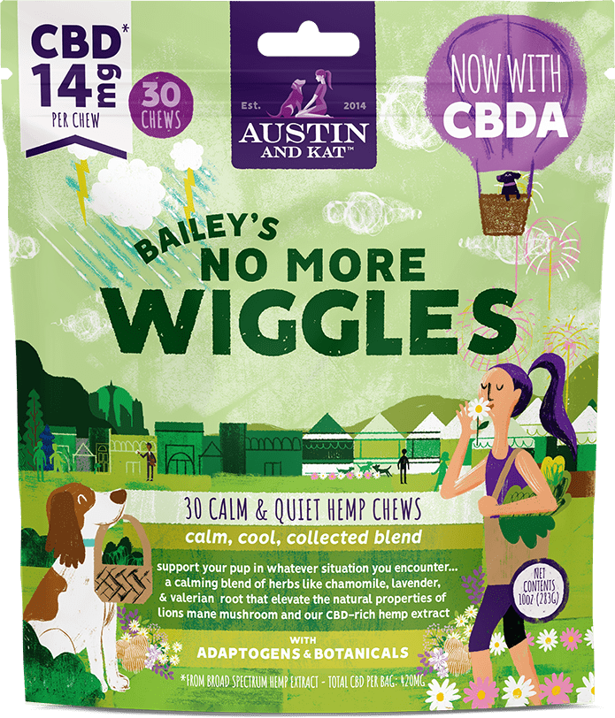 Austin and Kat's naturally CBD-rich broad-spectrum hemp extract (with CBDA) is combined with soothing natural ingredients including lavender, chamomile, and a lion’s mane mushroom superblend. Whether it's helping pets cope with being home alone or thunderstorms - this amazing soft chew helps support a calm state of mind, a balanced nervous system, and curb destructive behaviours.